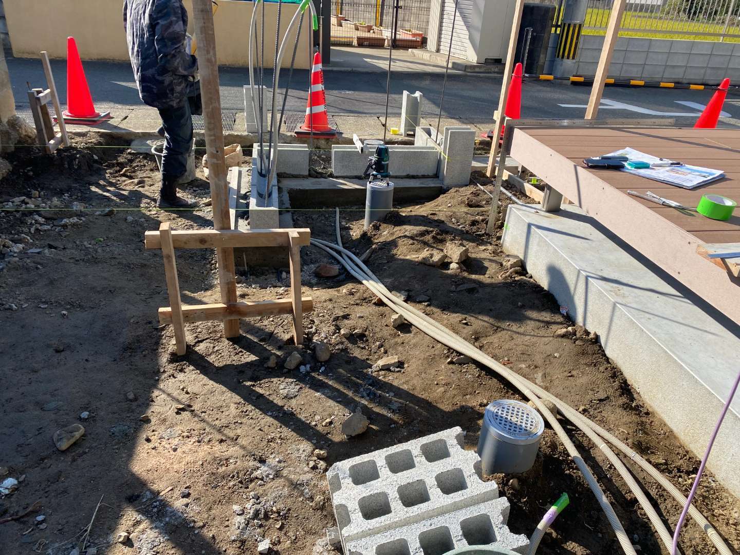 造園工事は、植物やデザインのイメージが強いかもしれませんが、実際の現場では構造・排水・勾配・基礎などの土木的要素が欠かせません。